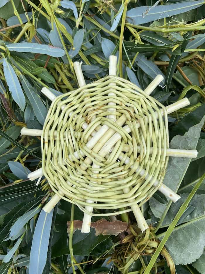 Canestro in vimini ad intreccio